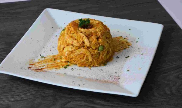 Disfruta de un clásico lleno de tradición y sabor. Nuestro arroz con pollo combina granos suaves y esponjosos con trozos de pollo tierno, cocidos juntos en un caldo sazonado con especias y hierbas que realzan cada ingrediente. Añadimos vegetales frescos para aportar color y textura, creando un plato reconfortante que recuerda a la cocina de casa. Perfecto para compartir o disfrutar solo, este arroz con pollo es una delicia que siempre querrás repetir. ¡Un festín lleno de sabor en cada bocado!