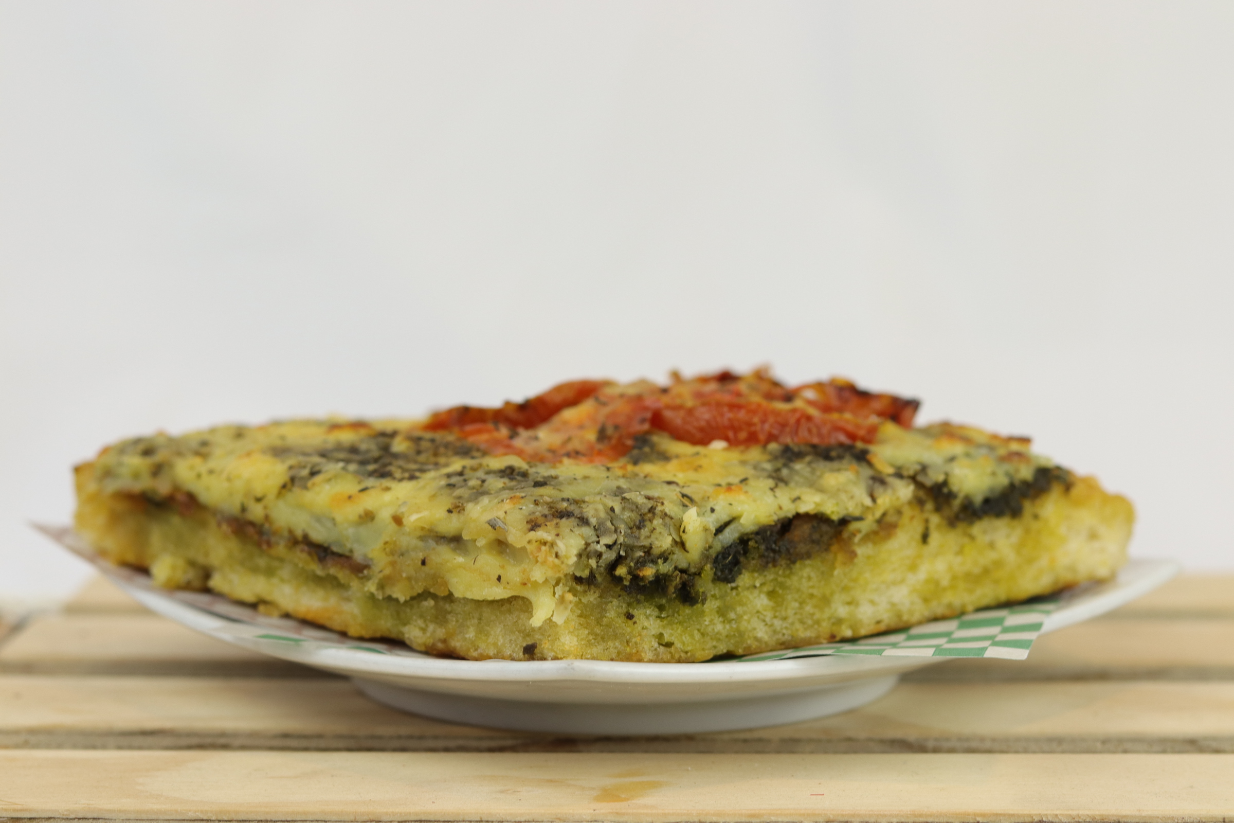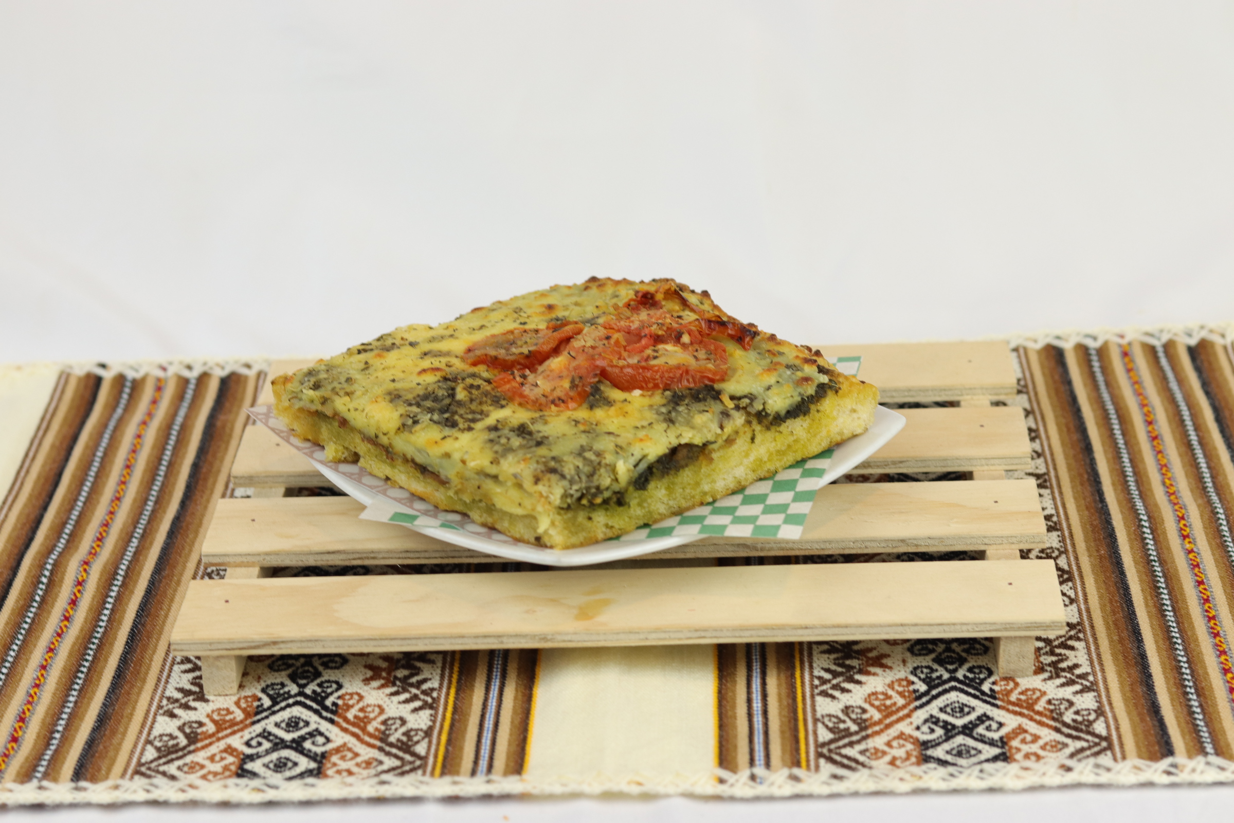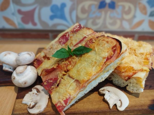 La focaccia que ofrecemos es un verdadero deleite para los amantes del pan artesanal. Su textura suave y esponjosa, acompañada de un toque de aceite de oliva extra virgen y hierbas frescas, le dan un sabor único y fragante. Perfecta para acompañar cualquier comida o disfrutar sola, esta focaccia es una opción versátil que puedes acompañar con queso, jamón, o simplemente saborear tal cual. Ideal para quienes buscan una experiencia gastronómica sencilla pero llena de sabor. ¡Cada bocado es un viaje directo a Italia!